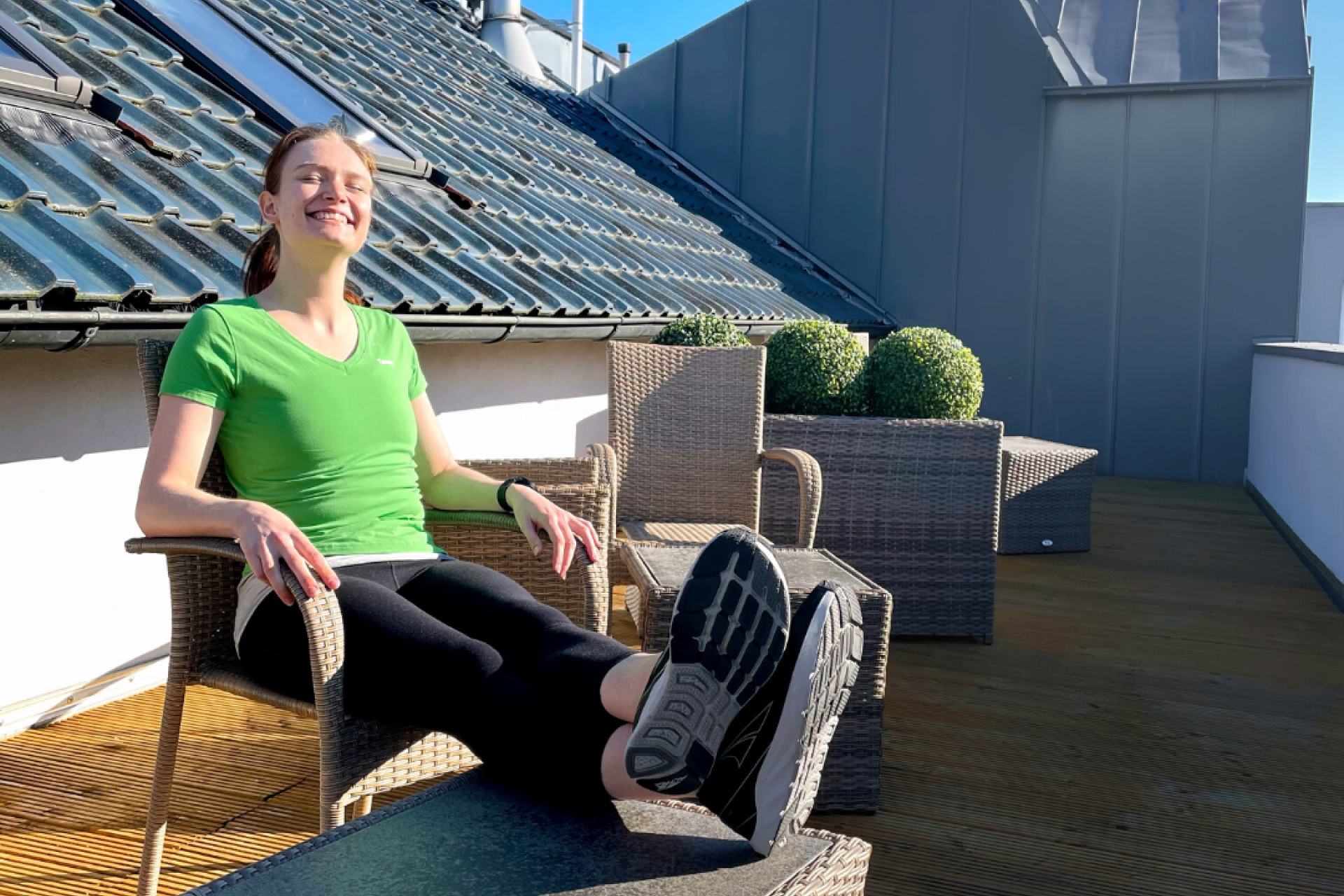 Ob auf einen Kaffee nach dem Training, zum Sonnenbaden oder zum Abkühlen nach dem Sauna-Gang: Auf unserer großzügigen Sonnenterrasse kannst du es dir so richtig gut gehen lassen.
