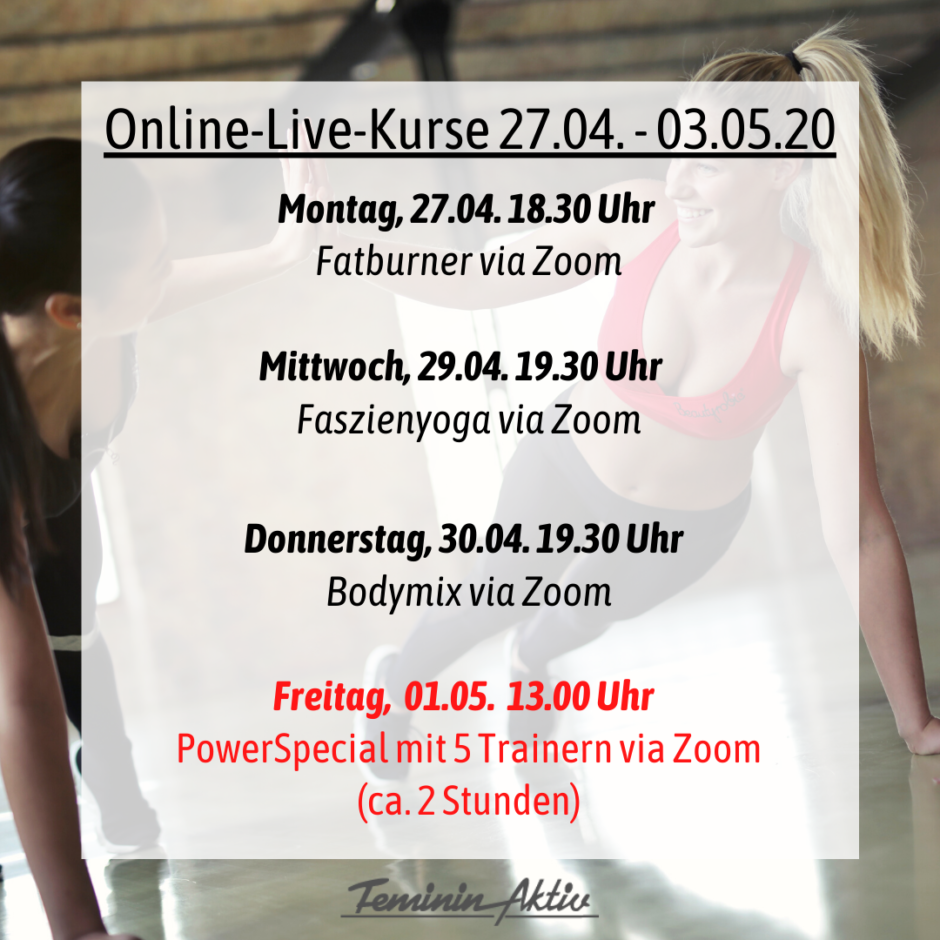 Live-Kursplan für die Woche von Montag, 27.04. – Sonntag, 03.05.20
