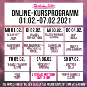 Auch in dieser Woche warten wieder jede Menge energiegeladene und ruhigere Kurse auf dich!
