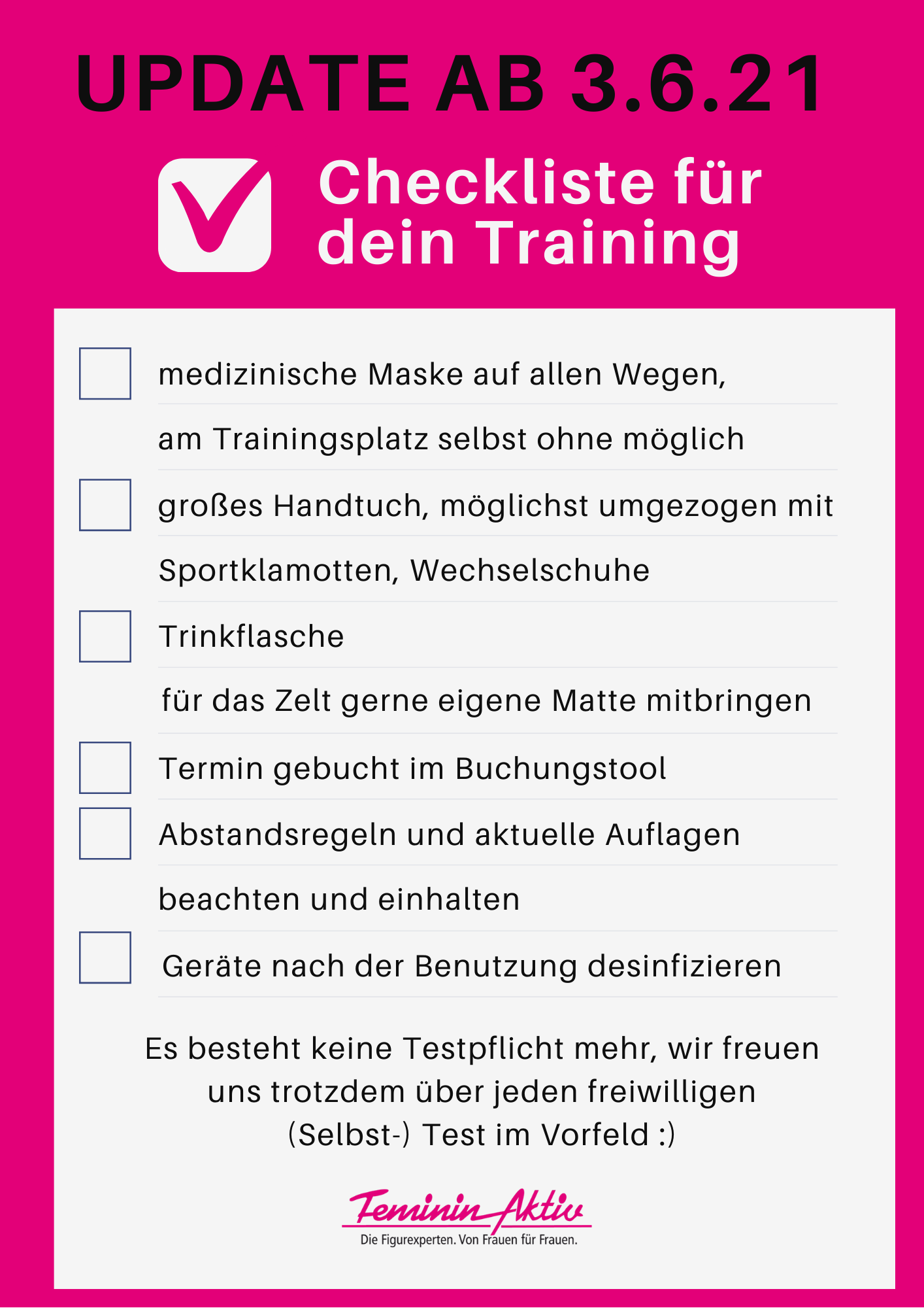 UPDATE Checkliste für dein Training im Feminin Aktiv 03.06.21